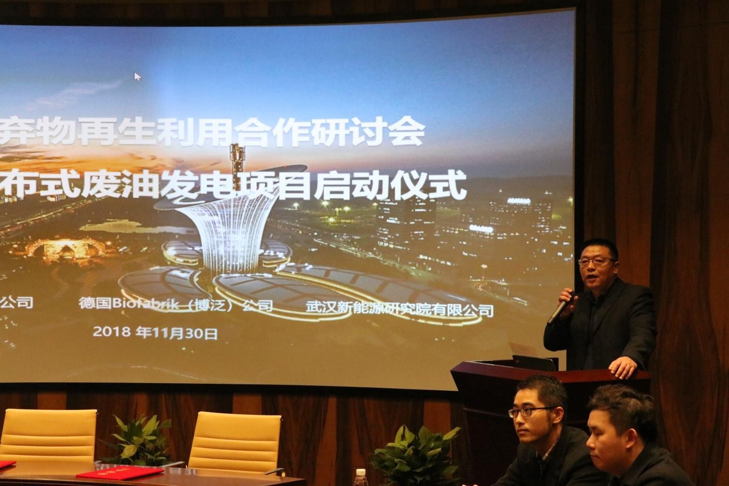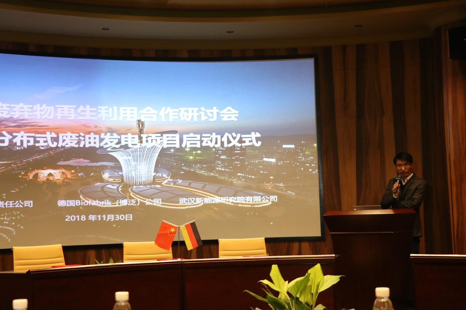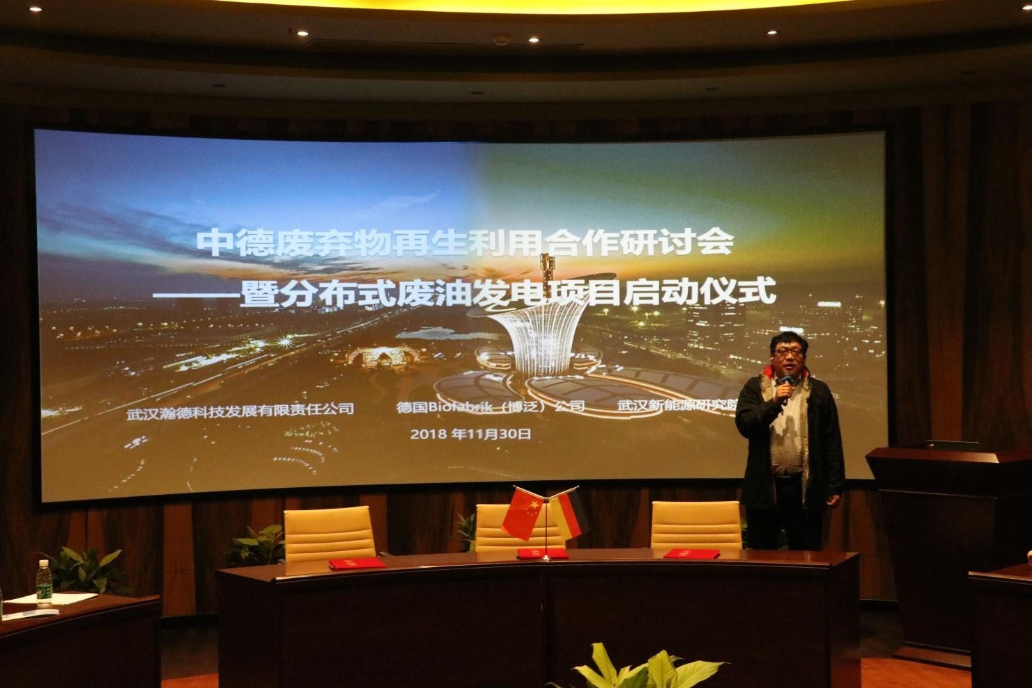 中德均為實(shí)體經(jīng)濟(jì)大國(guó)和制造業(yè)大國(guó),均將發(fā)展新能源、環(huán)保等戰(zhàn)略性新興產(chǎn)業(yè)作為未來(lái)政府工作重點(diǎn),綠色、低碳發(fā)展理念深入人心。近日,由德國(guó)Biofabrik(博泛)技術(shù)公司、武漢瀚德科技發(fā)展有限責(zé)任公司、武漢新能源研究院共同舉辦的“中德廢棄物再生利用合作研討會(huì)暨分布式廢油發(fā)電項(xiàng)目啟動(dòng)儀式”在新能源研究院召開。