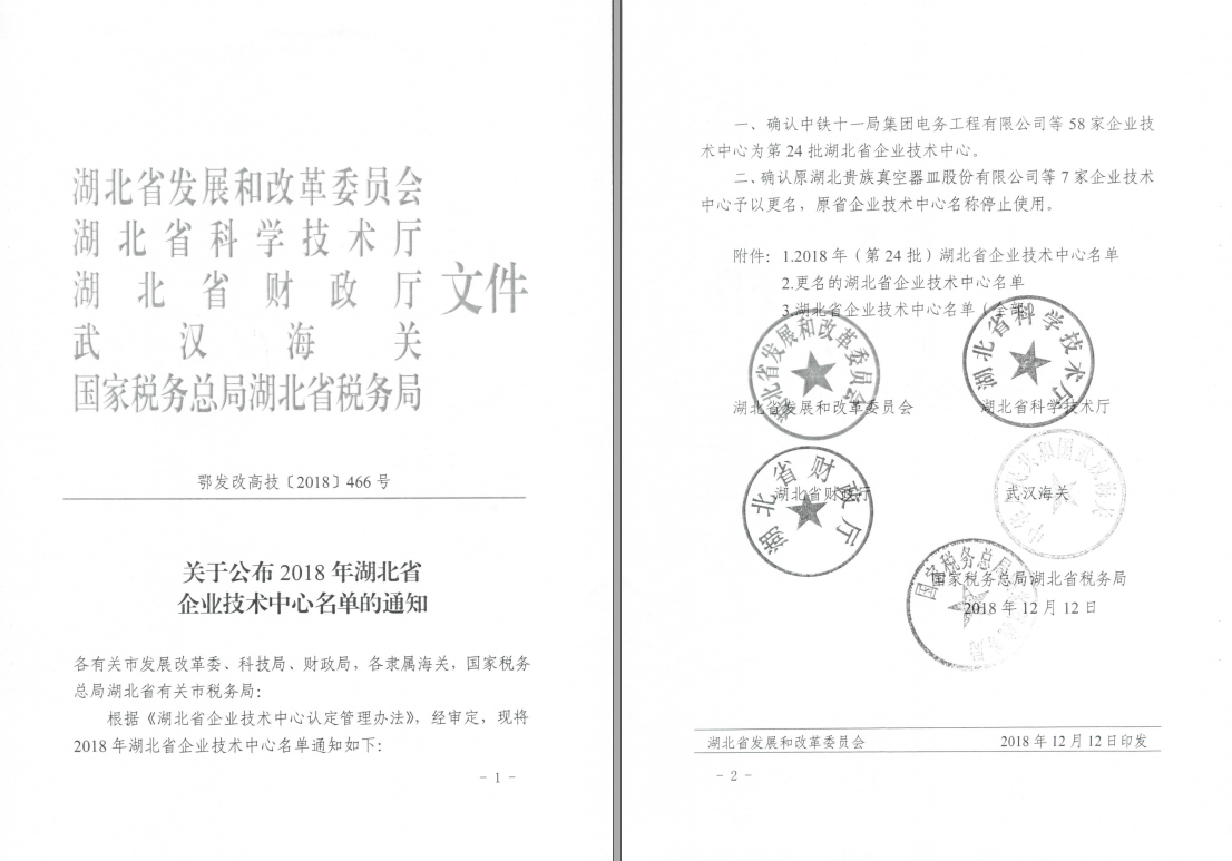 二、確認(rèn)原湖北貴族真空器皿股份有限公司等7家企業(yè)技術(shù)中心予以更名,原省企業(yè)技術(shù)中心名稱(chēng)停止使用。