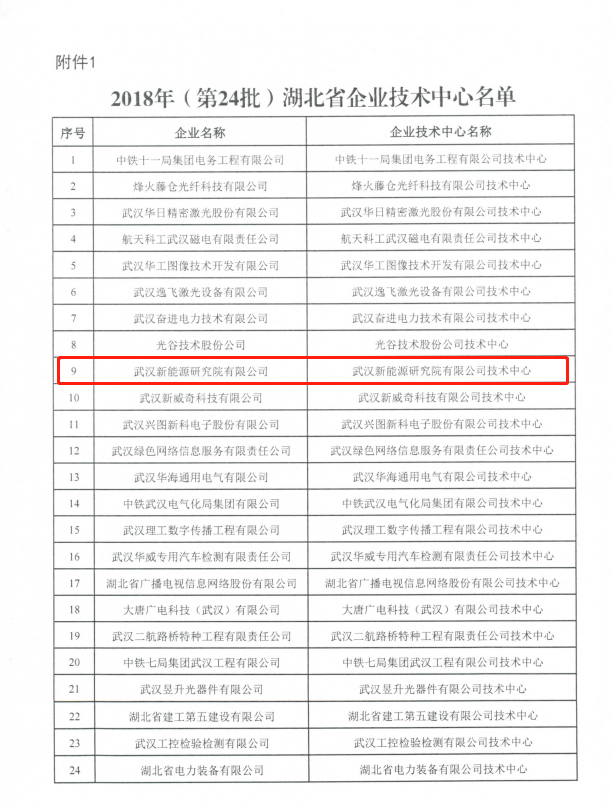 附件:1.2018年(第24批)湖北省企業(yè)技術(shù)中心名單