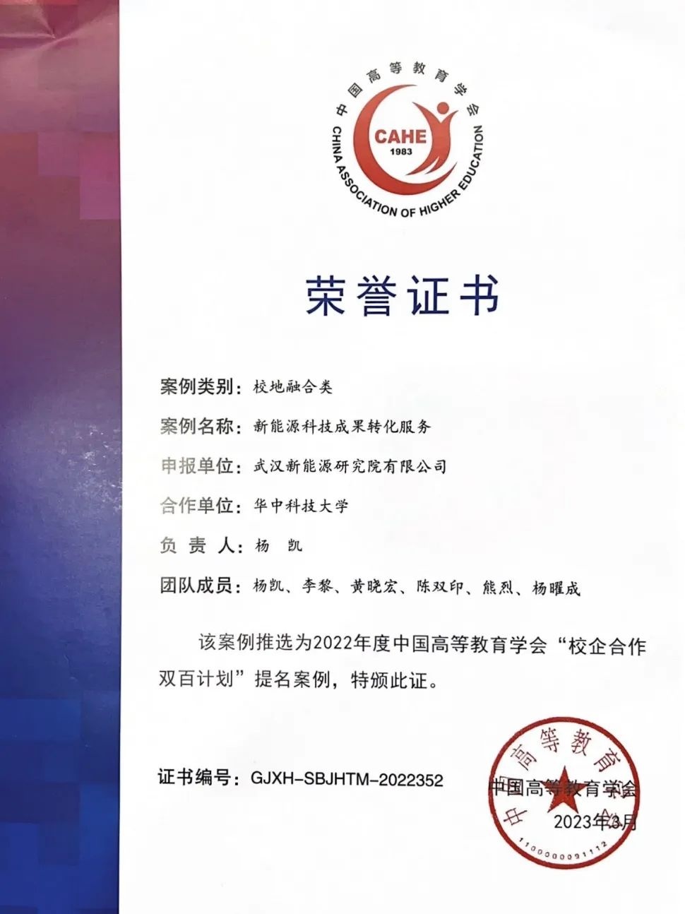 為深入推進(jìn)產(chǎn)教融合、校企合作,推選2022年度中國高等教育學(xué)會“校企合作 雙百計劃”典型案例,近日,中國高等教育學(xué)會以線上相結(jié)合形式,開展“雙百計劃”第五批走訪活動。武漢新能源研究院副院長李黎參加了本次答辯會。