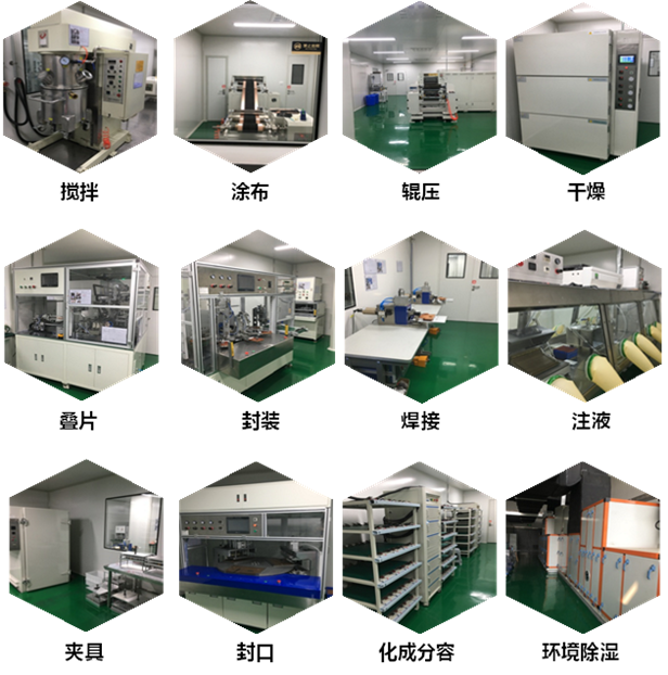 包含攪拌、涂布、對(duì)輥、疊片、焊接、頂封、注液、預(yù)化、抽氣封口、成型、化成的半自動(dòng)方形軟包電池中試線。