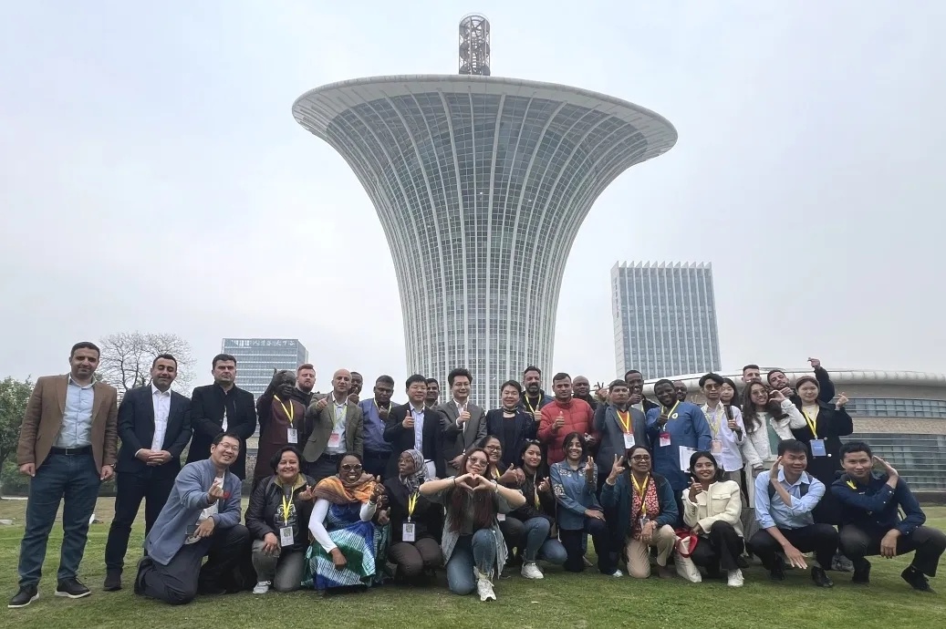 此次活動旨在加強發(fā)展中國家在全球價值鏈中的參與度和競爭力,通過實地考察與對話交流,深化和推動國際合作,到達后學員們先后參觀了武漢未來科技城展廳、武漢新能源研究院16樓展廳、湖北電鷹科技(無人機展示中心),逐一了解我院在國際合作、人才引進、創(chuàng)新創(chuàng)業(yè)、學術交流等方面建設發(fā)展情況。